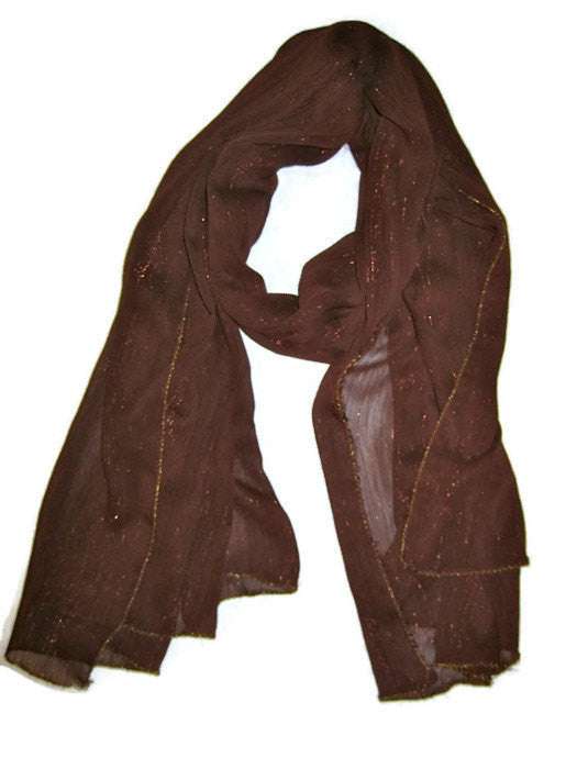 A beautiful dark brown shimmer scarf. This light and airy scarf it's perfect for any weather.